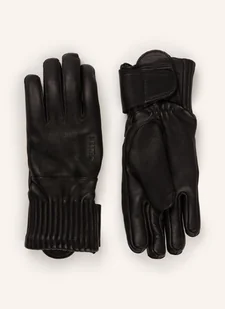 Matowy wygląd. Długie, zamknięte palce. Skóra. Jednolity kolor. Zapięcie na rzep do regulacji obwodu. Z podszewką. Ze skóry