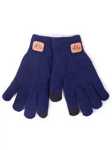 Rękawiczki pięciopalczaste – wygodne Dwuwarstwowe – ciepłe Elastyczne – dobrze dopasowują się do dłoni Do ekranów dotykowych Mankiet z gumką – komfortowe użytkowanie Praktyczne, klasyczne chłopięce rękawiczki. W kolorze granatowym. Na mankiecie znajduje się element dekoracyjny w postaci skórzanej naszywki z motywem gór. Dwuwarstwowe, stanowią świetną ochronę przed chłodem. Na końcówkach obu kciuków oraz palców wskazujących został naszyty materiał umożliwiający posługiwanie się ekranami dotykowymi.