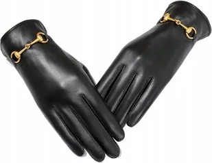 Rękawiczki Damskie Skórzane Czarne ZŁOTA KLAMERKA