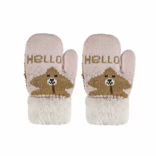 Rękawiczki dziecięce jeden palec ocieplone futerkiem jasnoróżowe