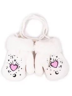 Rękawiczki dziewczęce jednopalczaste ze sznurkiem białe 10 cm YOCLUB