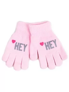 Rękawiczki pięciopalczaste – wygodne Elastyczne – dobrze dopasowują się do dłoni Jednowarstwowe Mankiet z gumką – komfortowe użytkowanie Praktyczne, dziewczęce rękawiczki w kolorze różowym z napisem: HEY. Jednowarstwowe, w środku wykończone delikatnym meszkiem. Świetnie prezentują się na dłoniach. Dziecięce rękawiczki, to obowiązkowy dodatek do jesiennej i zimowej garderoby. Doskonale ochronią przed mrozem i niskimi temperaturami.