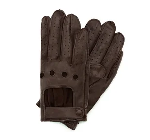 Męskie rękawiczki samochodowe, ozdobione oryginalnym dziurkowaniem. Model niezwykle funkcjonalny, a jednocześnie wyjątkowo atrakcyjny. Do jego niewątpliwych zalet należą zapięcie na zatrzask ułatwiające zakładanie oraz wszyta, elastyczna gumka, dzięki której dopasowanie rękawiczek do dłoni staje się o wiele łatwiejsze. Stylowy dodatek w postaci rękawiczek samochodowych powinien znaleźć się w każdej męskiej garderobie. wykonane z najwyższej jakości skóry owczej;