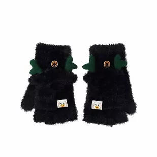 Rękawiczki młodzieżowe z klapką reniferki w kolorze czarnym to zabawny i praktyczny dodatek do zimowej garderoby.