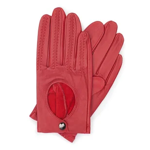 Rękawiczki samochodowe damskie ze skóry licowej czerwone
