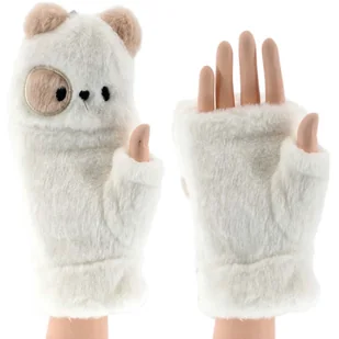 ZIMOWE RĘKAWICZKI ZABAWNE MORDKI MIŚ Z ODKRYTYM KCIUKIEM MITENKI BIAŁE Rękawiczki damskie zabawne mordki BARDZO WYGODNE MIŁE W DOTYKU Z KOŻUSZKIEM Dwupalczas...
