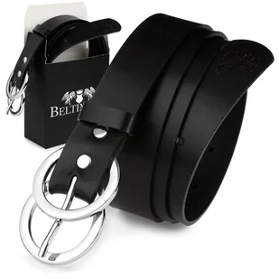 Beltimore skórzany pasek damski srebrne koła modny D51 czarny r.105-120 cm