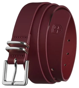 Bordowy pasek damski PETERSON elegancki klasyczny srebrna klamra do sukienki do spodni skóra ekologiczna