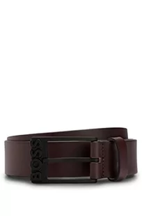 BOSS Simo-R-B Sz35 męski pasek z włoskiej skóry z matowym czarnym zapięciem z logo, Dark Brown202, 90