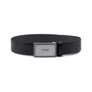 BOSS Męski pasek skórzany Luke Sz30 z zapięciem z logo, czarny (Black1), 90