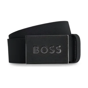 BOSS Męski pasek Icon-Diam Sz35 z włoskiej skóry z zapięciem na klamrę z logo, czarny (Black1), 95