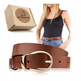 Brodrene Szeroki Pasek Damski do Spodni Brązowy Klasyczny Elegancki Złoty ✴️Skórzany Modny Pasek Damski ZŁOTA KLAMRA Brødrene OPD17 Przedstawiamy elegancki p...