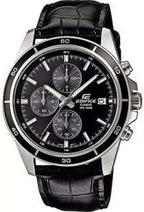 Casio Edifice Męski analogowy zegarek kwarcowy z paskiem z prawdziwej skóry, czarny, pasek