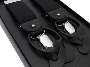 Czarne szelki męskie do spodni na guziki Dwie możliwości zapięcia do wyboru: na guziki lub klamerki. W zestawie 6 guzików oraz instrukcja mocowania. Cena pro...