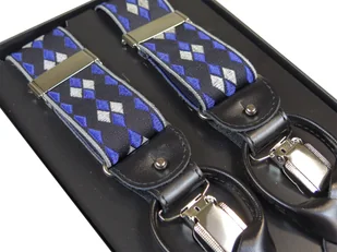 Czarne szelki na guziki w granatowe i szare romby G27 Czarne szelki na guziki w granatowe i szare romby. Wyprodukowane w Polsce. Dwie możliwości zapięcia do ...