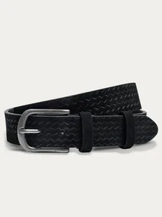 Czarny pasek męski. Wykonany w 100% ze skóry. Posiada klasyczną prostokątną klamrę. Szerokość paska to 3,5 cm. Pasek idealnie sprawdzi się w stylizacjach w s...