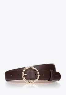 Skórzany pasek z okrągłą klamrą – prostota w eleganckim wydaniu Nasz damski pasek to minimalistyczny dodatek, który doskonale wpisuje się zarówno w styl codzienny, jak i elegancki. Wykonany z gładkiej skóry naturalnej, zachwyca prostą formą i okrągłą klamrą, która nadaje całości modowego charakteru, nie tracąc przy tym lekkości. Subtelne, tłoczone logo producenta dopełnia całości i podkreśla dbałość o detale. Całość zapakowana jest w miękki, aksamitny worek z logo – idealny również jako prezent. Dla kogo? Jeśli szukasz dodatku, który