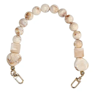 Dekoracyjny pasek do torebki Toscanio K2 to elegancki dodatek, który doskonale uzupełni każdą stylizację. Wykonany z tworzywa sztucznego, w połączeniu kolorów: kremowego i beżowego. Pasek ma szerokość 3 cm oraz długość 45 cm, co czyni go idealnym rozwiązaniem do różnego rodzaju torebek. Złote zapięcie nadaje mu wyjątkowego charakteru, idealnie wpisując się w nowoczesne trendy modowe.