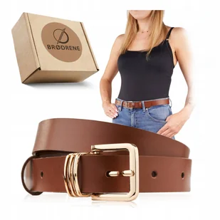 Długi Pasek Damski do Spodni Skórzany Brodrene Brązowy Złota Klamerka 115cm ✴️Skórzany Modny Pasek Damski ZŁOTA KLAMRA Brødrene OPD16 Przedstawiamy elegancki...