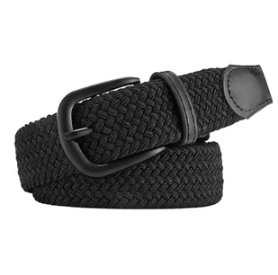 Elastyczny czarny elegancki pasek pleciony parciany do spodni mocny