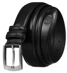 Elegancki klasyczny pasek męski z tradycyjną srebrną klamrą 125 PETERSON czarny ze skóry naturalnej siedem dziurek możliwość samodzielnego skracania