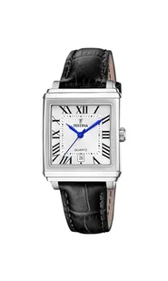 Festina F20682/3 na kwadratowym zegarku damski szary skórzany pasek ze stali nierdzewnej czarny, srebrny, pasek