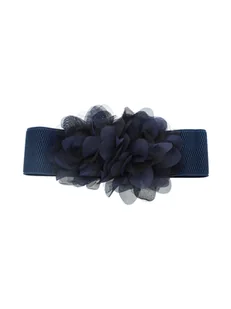 Granatowy pasek na gumce do sukienki z 3D płatkami
