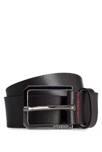 HUGO Męski pasek skórzany Gengol Sz35 z czerwonymi szwami i zapięciem z logo, ciemnobrązowy, 90