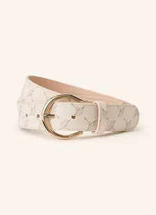 Gładka skóra i fakturowany materiał syntetyczny. Klamra ze szpilką w złotym kolorze. Wzór monogramu