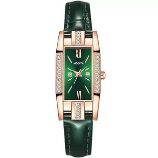 Klasyczny modny zegarek, pasek, zielony kwadratowy zegarek, uniwersalny klasyk, element mody