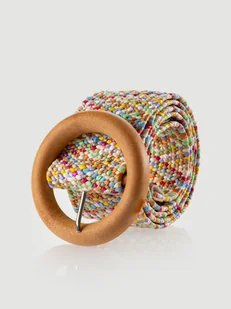 Pasek damski Top Secret z okrągłą drewnianą klamrą. Pełen wysublimowanego wdzięku pasek damski o nieco szerszym kroju z efektownej, kolorowej plecionki. Posiada on drewnianą klamrę o okrągłym kształcie. Może być on z dużym powodzeniem wykorzystany zarówno jako element upiększający luźną sukienkę, jak i również ciekawe długie spodnie materiałowe. Jest on szczególnie polecany kobietom ceniącym sobie własny styl oraz ekstrawagancję.