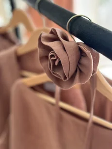 Lniany pasek z różą w kolorze nugatowym Subtelny detal, który mówi więcej niż słowa Dodatek, który zachwyca prostotą i kobiecością. Cienki lniany pasek z ręcznie formowaną różą w odcieniu nugatu to coś więcej niż o ...