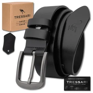 Męski pasek TRESSARI 100% skóra naturalna skórzany czarny do spodni