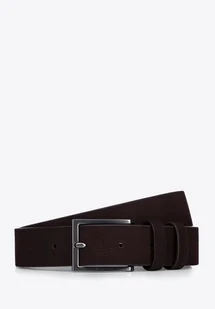Męski pasek we wzór. Ten męski pasek wprowadzi nowy styl do Twojej szafy. Wykonany został z wysokiej jakości skóry zamszowej, wytłoczonej w dyskretne ukośne paseczki. Elegancka klamra w kolorze grafitowym dodaje mu szyku. Noś go do nieformalnych stylizacji, do dżinsów lub sztruksów – w każdej sytuacji będziesz wyglądał stylowo.