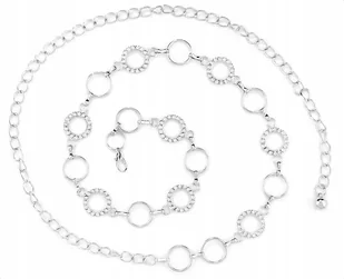 Ozdobny Pasek metalowySpecyfikacja:Materiał: MetalDługość: 110 cmPrzedłużka: (element bez ozdoby): 50 cmOzdoba: 60 cmŚrednica pojedynczej ozdoby: 2 cmKolor: Srebrny