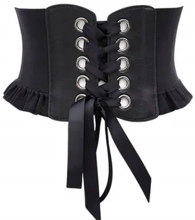 Pasek damski elastyczny gorset, sznurowany Jest idealna do każdej stylizacji, kreacji, do swetrów, sukienek czy tunik. Pasek jest wykonany z materiału elastycznego, można go wiązać z przodu na tasiemkę Lub zapiąć z tyłu na trzy zatrzaski Długość : 73 cm można rozciągnąć do 95 cm Szerokość paska : 10 cm MATERIAŁ: Syntetyczny elastyczny, wstawki ekoskóra