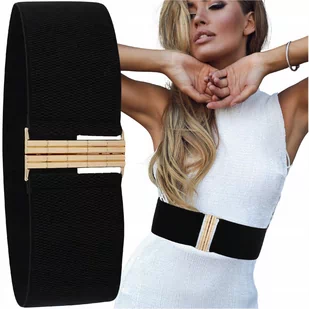 Pasek damski elastyczny czarny złoty szeroki do sukienki guma talia prosty