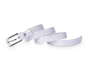 Gustowny pasek damski, wykonany ze skóry ekologicznej wyprodukowany w Polsce skóropodobny materiał o grubości 1,5 mm piękna, metalowa klamra groszkowa powier...