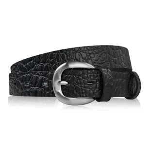 Pasek damski do spodni – klasyka, która nigdy nie wychodzi z mody! Ten model paska damskiego to propozycja dla kobiet, które lubią bawić się modą! Pasek został wykonany z wytrzymałej skóry naturalnej z widocznym przetłoczeniami imitującymi skórę krokodyla. To świetna propozycja dla kobiet, które lubią się wyróżnić i podkreślić swoje stylizacje niebanalnymi dodatkami skórzanymi. Zalety, które docenisz na co dzień 100% naturalna skóra - wysokogatunkowa skóra o widocznej, lekko błyszczącej fakturze. Solidna, trwała, odporna na zginanie i codzienne użytkowanie. Uniwersalny, elegancki styl - pasek w głębokiej czerni pasuje zarówno do casualowych jeansów, chinosów, jak i bardziej eleganckich zestawów.