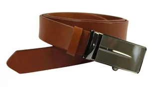Pasek Męski Skórzany Arucce (PL) Skóra Licowa EXTRA 35 mm BRĄZOWY Gładki Klamra Bezniklowa Samozaciskowa SREBRNA 39