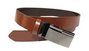 Pasek Męski Skórzany Arucce (PL) Skóra Licowa EXTRA 35 mm BRĄZOWY Gładki Klamra Bezniklowa Samozaciskowa SREBRNA 40