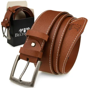 Pasek męski skórzany klamra 4 cm brązowy BELTIMORE A34 brązowy, beżowy r.120-135 cm