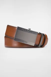 Brązowy pasek skórzany, męski Próchnik z automatyczną klamrą ze srebrnej stali szczotkowanej, którą zdobi logo marki. Wykonaliśmy go w 100% z naturalnej skór...