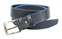 Pasek Skórzany COMPLEX (PL) GRINGO Czarny Z Niebieską Nitką Skóra Licowa Matowa 40 mm Pasek skórzany wykonany ze 100% bydlęcej skóry. Jest to najwyższej jakości, a co bardziej istotne najbardziej wytrzymały rodzaj skóry - skóra licowa , jednolita. Produkcja pasków odbywa się w Polsce z użyciem skór z polskich garbarni. Pasek jest gładki co dodaje mu elegancji i ponadczasowego stylu. Wystarczy dodać że ze skóry bydlęcej licowej wykonane są zazwyczaj pasy wojskowe, policyjne oraz większość elementów stosowanych w osprzęcie dla koni i jeździectwie (lejce, ogłowie itp.).