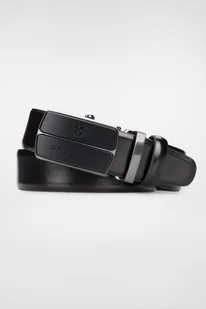 Męski pasek skórzany Próchnik z automatyczną klamrą, którą zdobi logo i sygnet marki. Wykonaliśmy go w 100% z naturalnej skóry bydlęcej w kolorze czarnym z d...