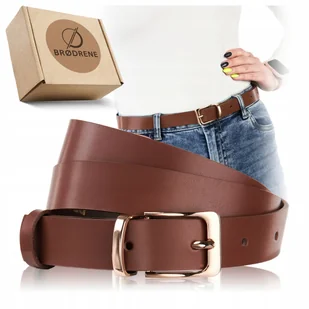 Pasek Skórzany Damski Brodrene Brązowy Złota Klamra do Spodni 110cm Skórzany Modny Pasek Damski ZŁOTA KLAMRA Brødrene OPD05 Przedstawiamy elegancki pasek skó...