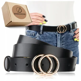 Pasek Skórzany Damski Czarny Modny Pasek Kobiecy Brodrene Czarny Box 85cm Skórzany Modny Pasek Damski ZŁOTA KLAMRA Brødrene OPD02 Przedstawiamy elegancki pas...