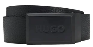 Skórzany pasek męski zapinany na bolec HUGO BOSS r. 95 Ten pasek ze skóry z sygnowanymi detalami na sprzączce doda Twoim strojom odrobinę koloru i elegancji. Uniwersalny pasek HUGO wykończony metalowym logo na szlufce. Wykonany z garbowanej włoskiej skóry. Aby uzyskać najlepsze dopasowanie, zalecamy zamówienie paska zgodnie z wymiarami poniżej.