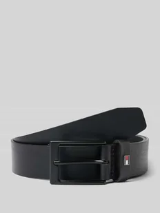 Pasek skórzany męski Tommy Hilfiger;Efekt: jednolity kolor;Zapięcie: Sprzączka;Aplikacja: Aplikacja z logo;Wykończenie materiału: groszkowa gładka skóra;Materiał: skóra naturalna