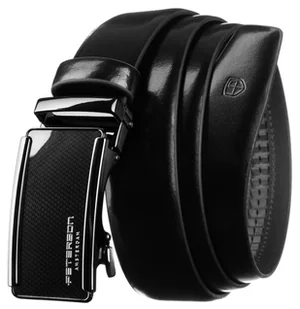 PETERSON Czarny elegancki gładki pasek męski do spodni 125 skóra naturalna automatyczna czarna klamra casualowy do garnituru